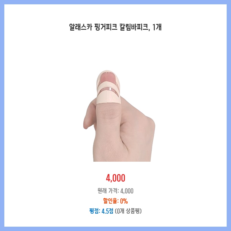칼림바 연주를 시작하며 핑거피크가 필요했는데, 알래스카 핑거피크의 견고함과 4,000원이라는 저렴한 가격이 매력적이었습니다. 다른 제품들보다 손에 잘 맞는다는 후기를 보고 구매했습니다.