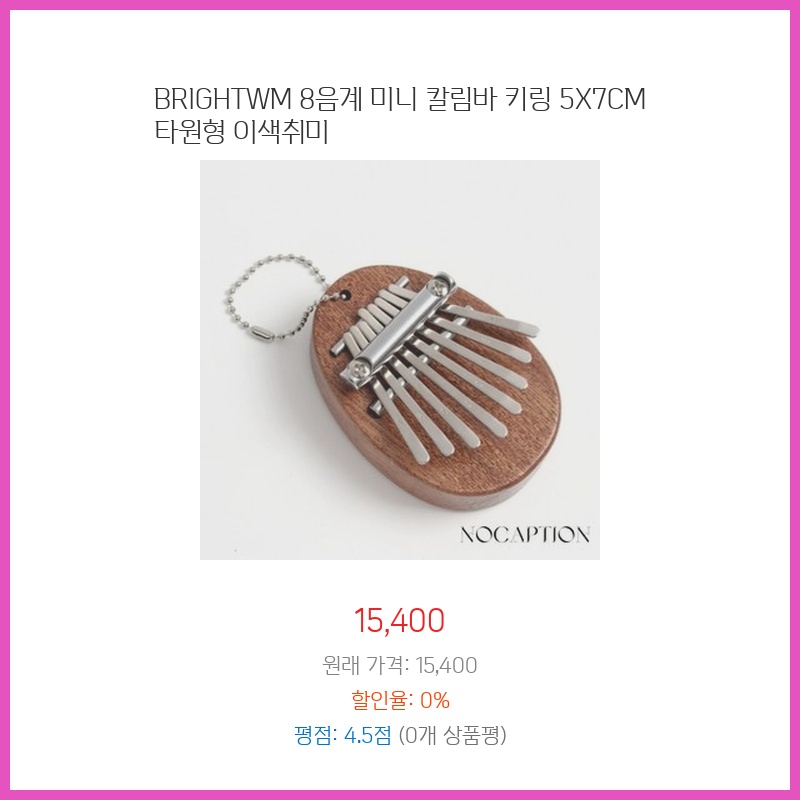 휴대성이 좋은 칼림바를 찾던 중, 키링 형태라 가방에 걸고 다니며 언제든 연주할 수 있어 구매했습니다. 8음계라 간단한 멜로디 연주가 가능하고, 디자인도 예뻐서 만족스럽습니다. 크기도 적당해서 부담없어요.