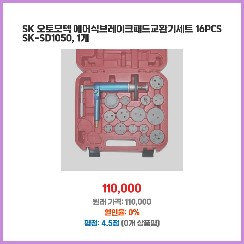 SK 오토모텍 에어식브레이크패드교환기세트 16PCS SK-SD1050, 1개