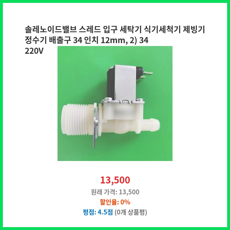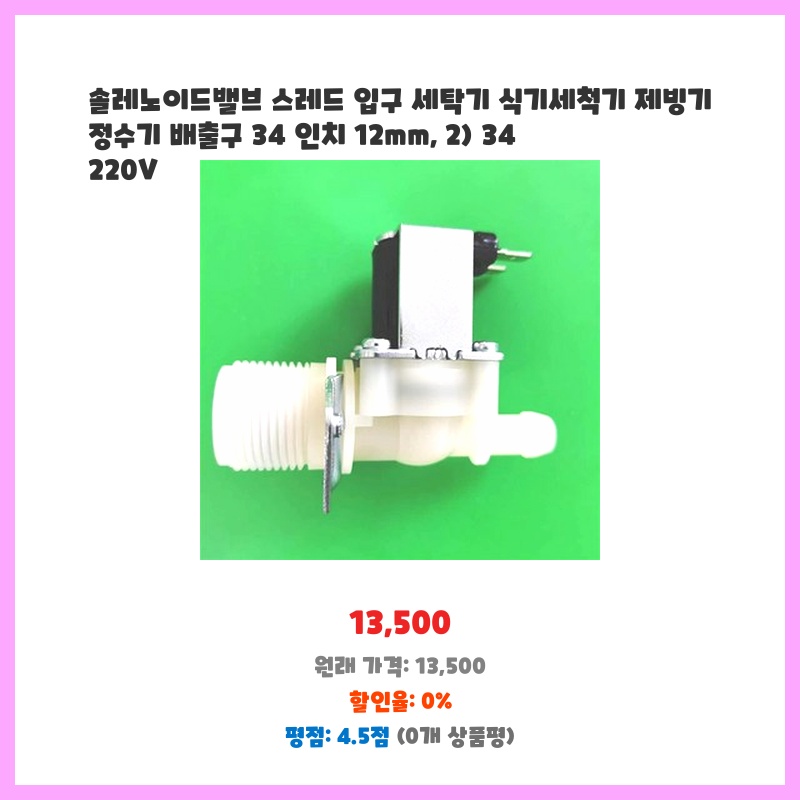 솔레노이드밸브 스레드 입구 세탁기 식기세척기 제빙기 정수기 배출구 34 인치 12mm, 2) 34 220V