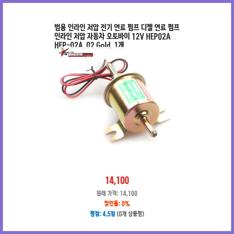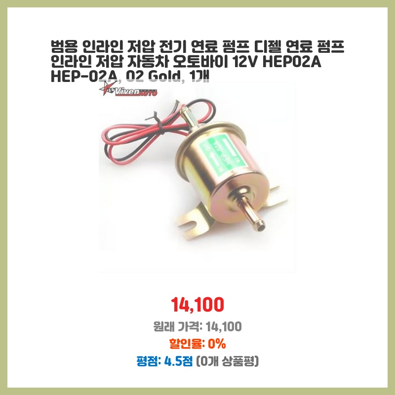 기존 연료펌프의 성능 저하로 교체가 필요했고, 가격 대비 성능이 우수한 제품을 찾던 중 HEP-02A를 선택했습니다. 다양한 차량에 호환 가능하고, 12V라는 점이 제 차량과 호환되어 편리했습니다. 설치도 어렵지 않았습니다.