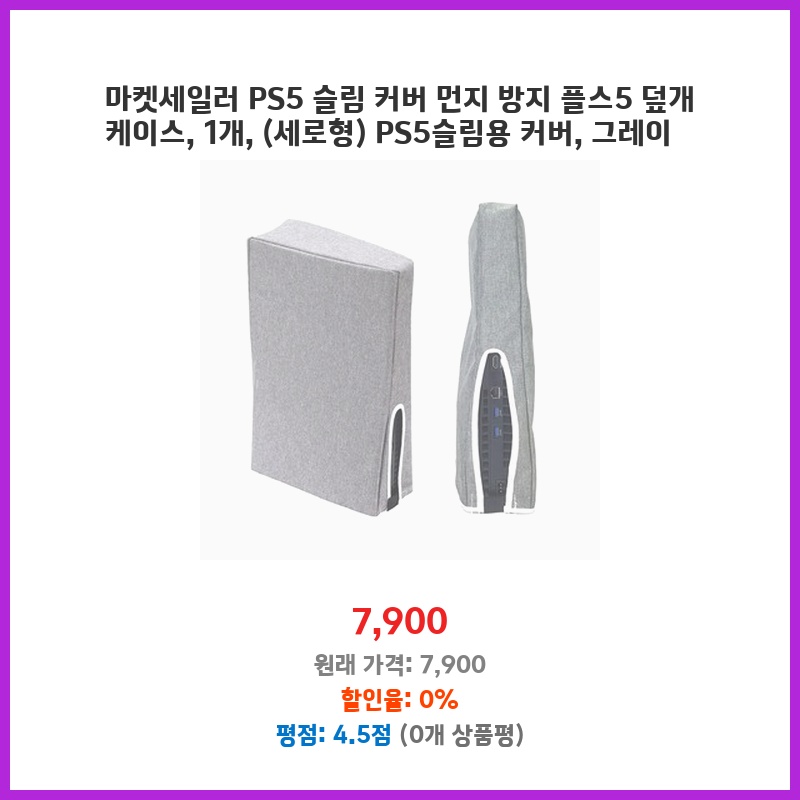 PS5 슬림의 깔끔한 디자인을 유지하고 싶어서 구매했습니다. 먼지나 스크래치로부터 기기를 보호해주는 실용적인 제품이며, 그레이 색상이 PS5 슬림과 잘 어울립니다. 세로형 거치대 사용 시에도 안정적으로 사용 가능합니다.