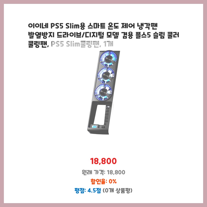 PS5 Slim의 발열 문제가 걱정되어 구매했습니다. 소음이 적고, 디지털디스크 모델 모두 호환된다는 점이 마음에 들었습니다. 장시간 게임 플레이에도 안정적인 작동을 기대하며 구매했습니다.