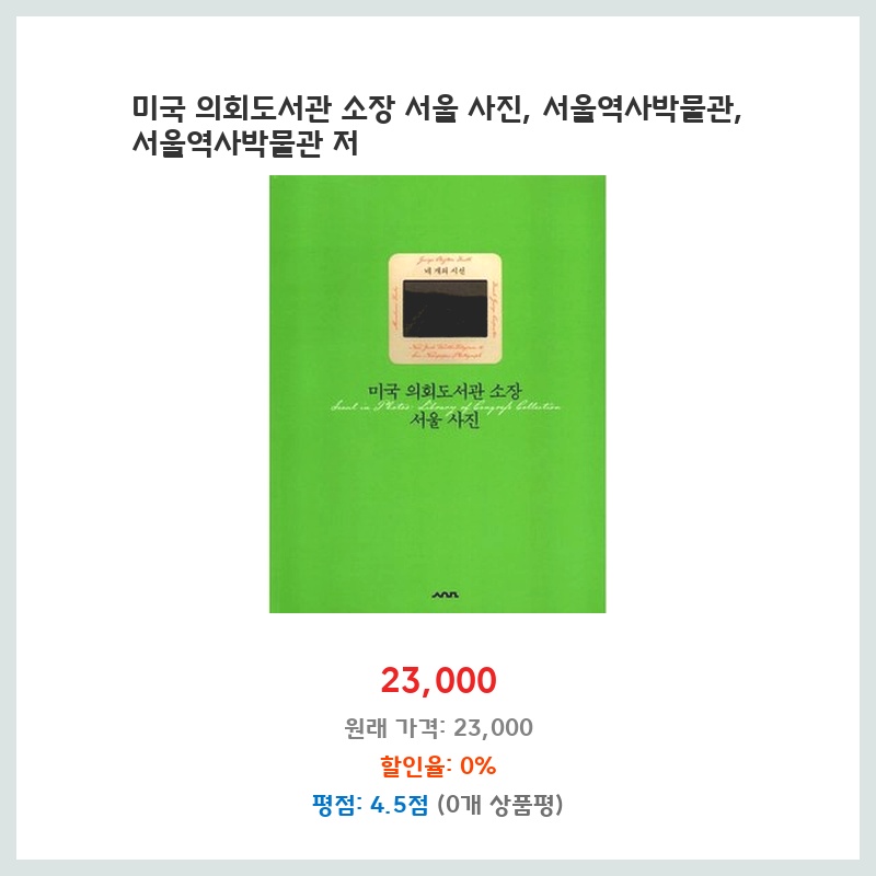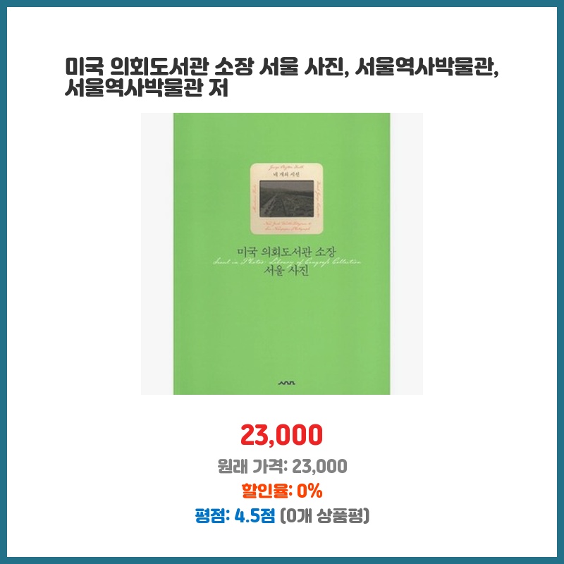 미국 의회도서관 소장 사진이라 역사적 가치가 높고, 서울의 과거 모습을 생생하게 볼 수 있을 것 같아 구매했습니다. 서울역사박물관에서 출판했으니 신뢰도도 높다고 판단했습니다. 책의 구성과 사진 품질도 기대됩니다.