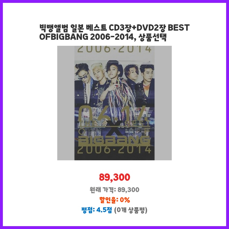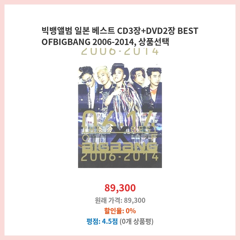 시즌 맞춤 빅뱅앨범 일본 베스트 CD3장+DVD2장 BEST OFBIGBANG 2006-2014 상품선택 바로 적용되는 혜택