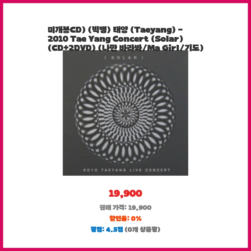 미개봉CD) (빅뱅) 태양 (Taeyang) - 2010 Tae Yang Concert (Solar) (CD+2DVD) (나만 바라봐/Ma Girl/기도)