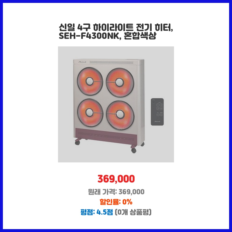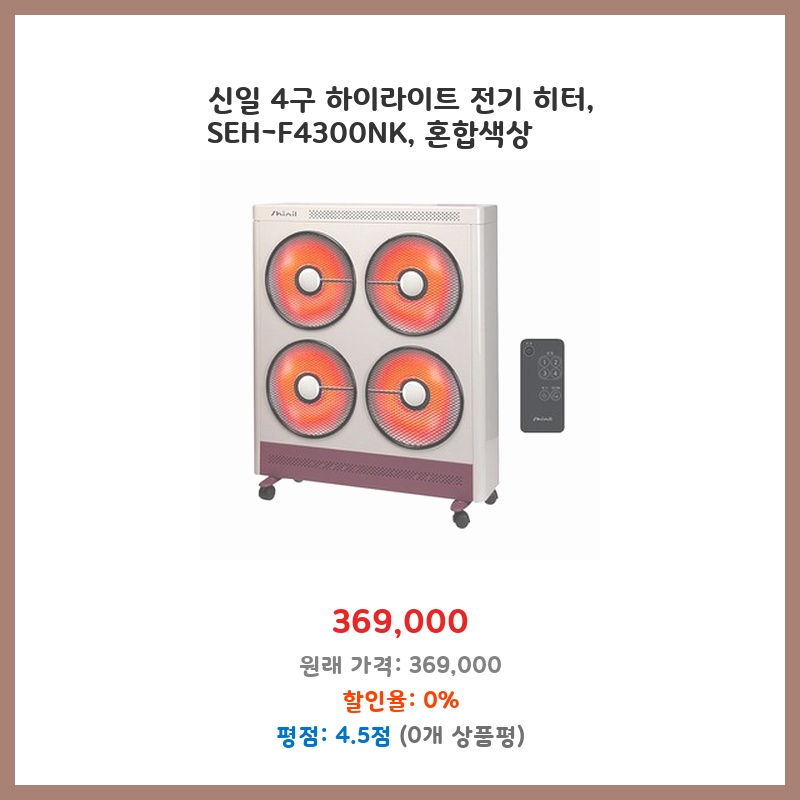 신일 4구 하이라이트 전기 히터, SEH-F4300NK, 혼합색상