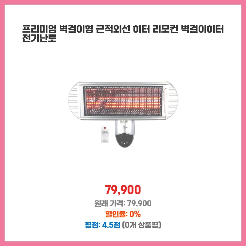 겨울철 추위에 난방비 부담이 커서 벽걸이형 히터를 찾던 중, 리모컨 기능과 근적외선 방식의 따뜻함에 끌려 구매했습니다. 공간 차지도 적고 디자인도 깔끔해서 만족스럽습니다.
