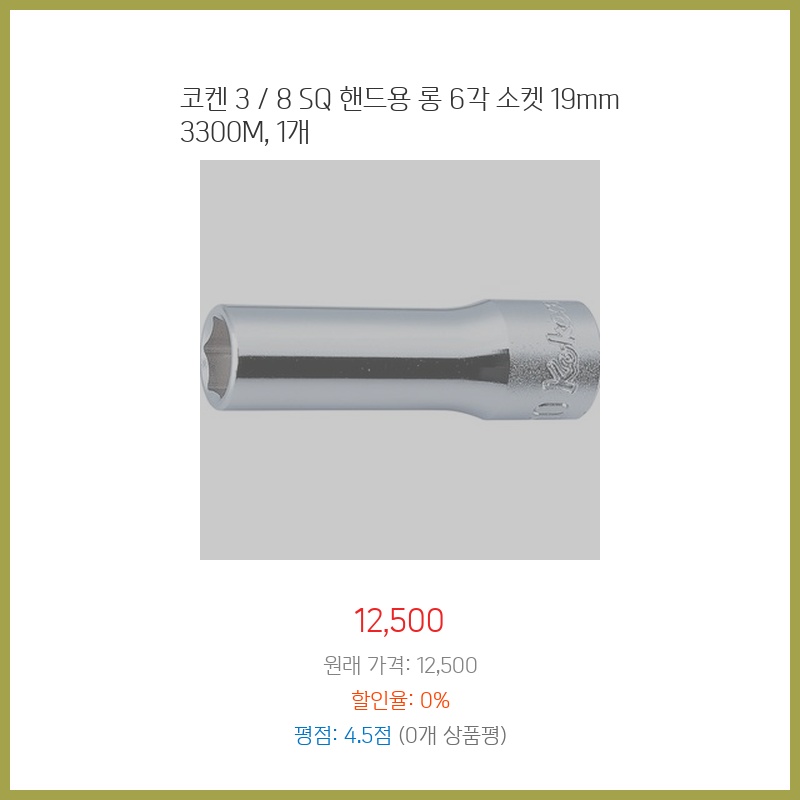 좁은 공간에서 작업해야 할 때 일반 소켓으로는 접근이 어려워 롱 소켓이 필요했습니다. 코켄 제품은 내구성이 좋다는 평이 많아 19mm 롱 소켓을 찾던 중 38SQ 핸들에 맞는 이 제품을 선택했습니다. 길이가 충분하고 튼튼해 보여 만족스럽습니다.