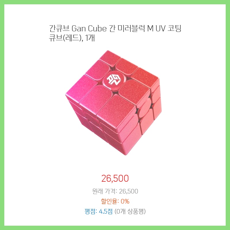 간큐브 Gan Cube 간 미러블럭 M UV 코팅 큐브(레드), 1개