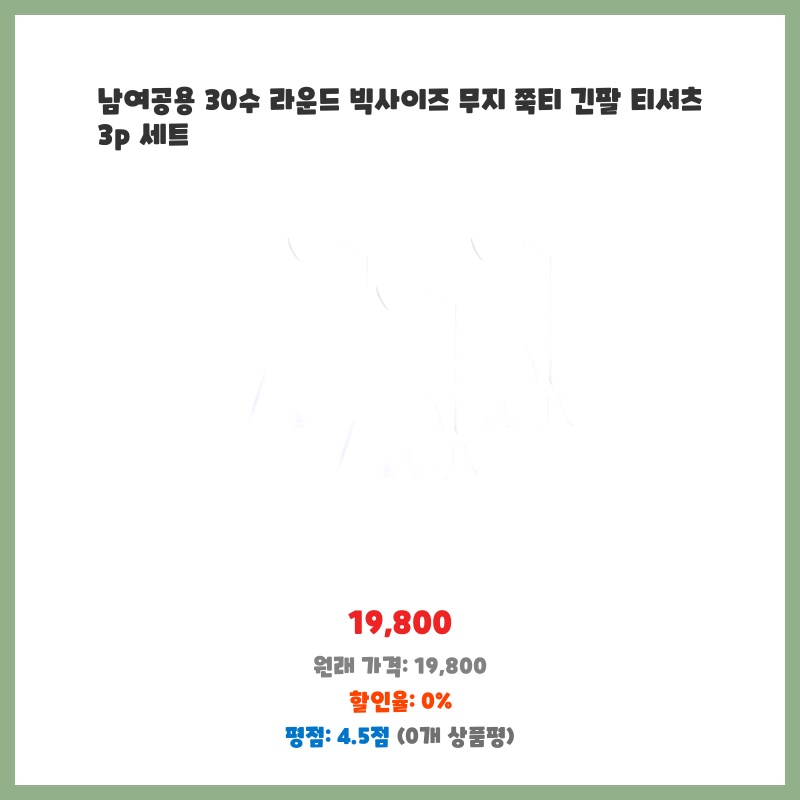 3장에 19,800원이라는 저렴한 가격에 빅사이즈까지 있어서 부담없이 구매했습니다. 면 소재라 편안하고, 무지라 어떤 옷에도 잘 어울려 활용도가 높을 것 같아요. 3장이니까 세탁하며 돌려 입기에도 좋습니다.