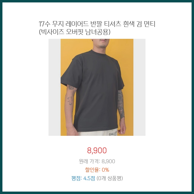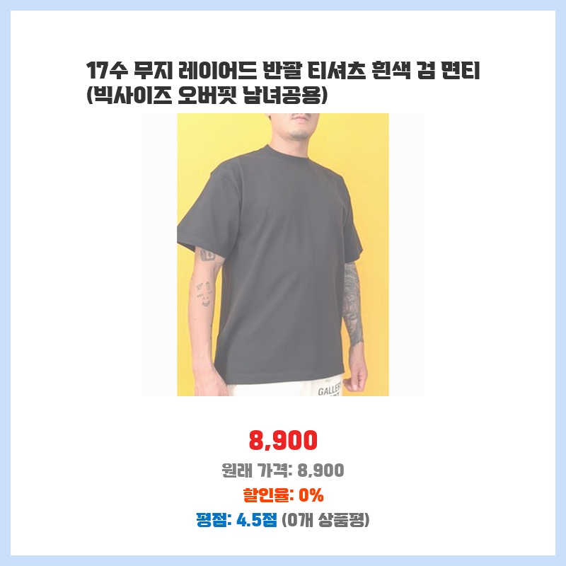 17수 무지 레이어드 반팔 티셔츠 흰색 검 면티 (빅사이즈 오버핏 남녀공용)