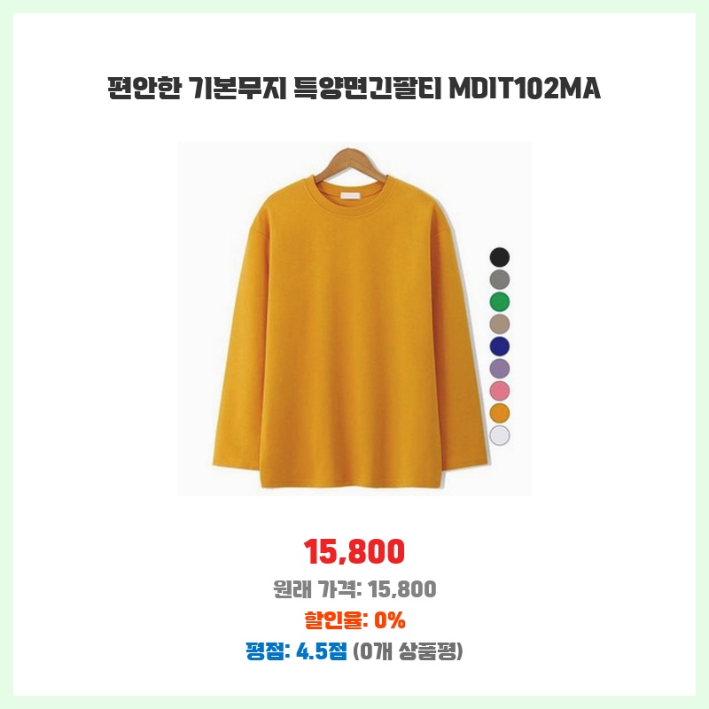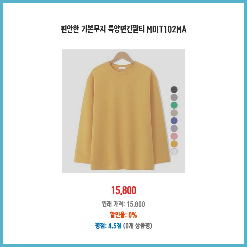 편안한 기본무지 특양면긴팔티 MDIT102MA