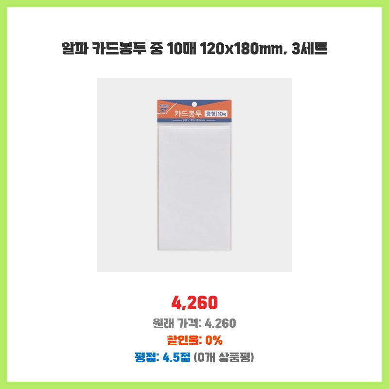 알파 카드봉투 중 10매 120x180mm, 3세트