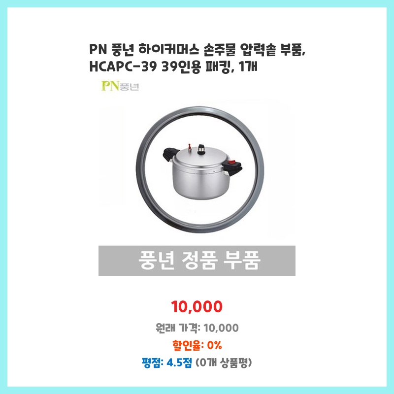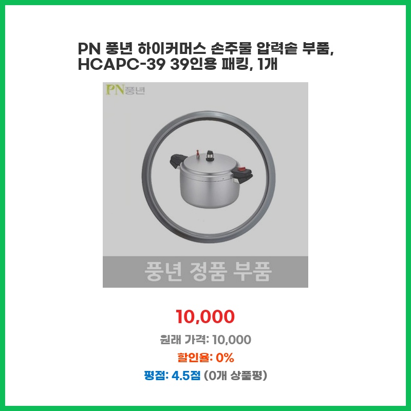PN 풍년 하이커머스 손주물 압력솥 부품, HCAPC-39 39인용 패킹, 1개