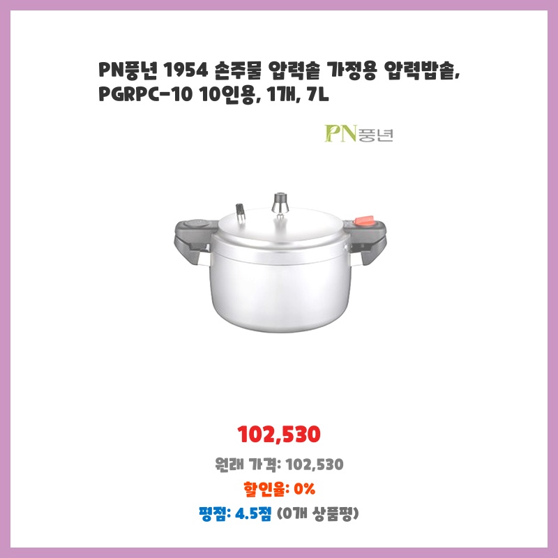 인기 검색어 PN풍년 1954 손주물 압력솥 가정용 압력밥솥 PGRPC-10인용 1개 7L 할인 놓치지 마세요
