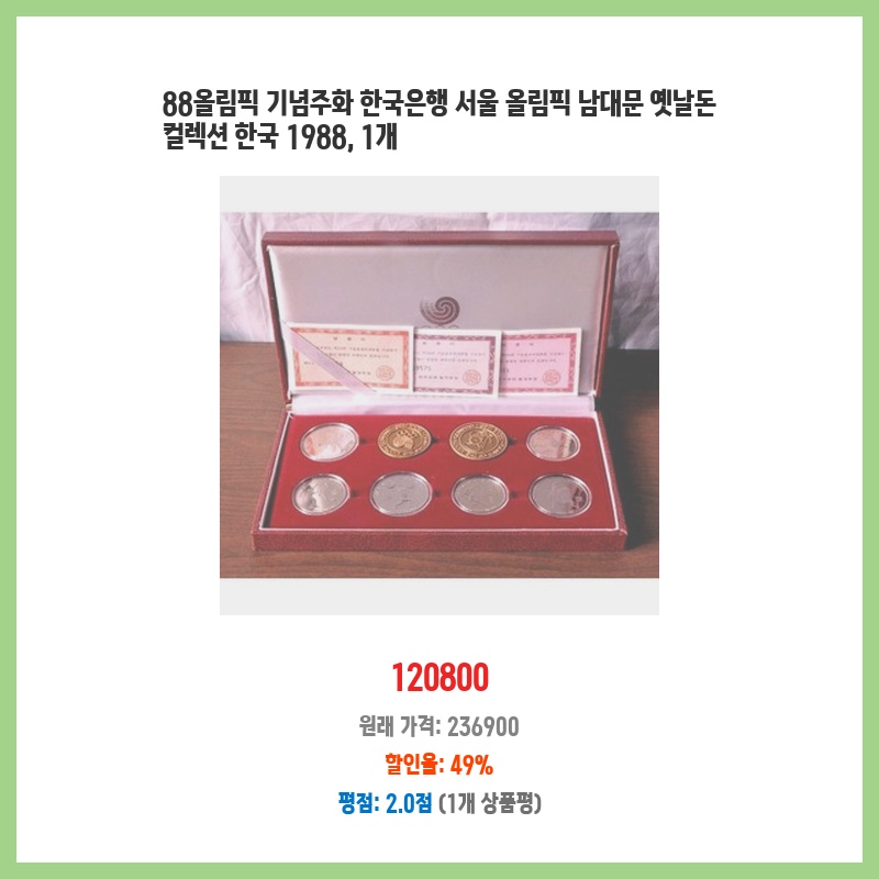 상품 상태가 매우 좋았고, 옛날 돈과 함께 전시해두니 보기 좋습니다. 88올림픽의 추억이 새록새록 떠오르네요. 만족스러운 구매였습니다.