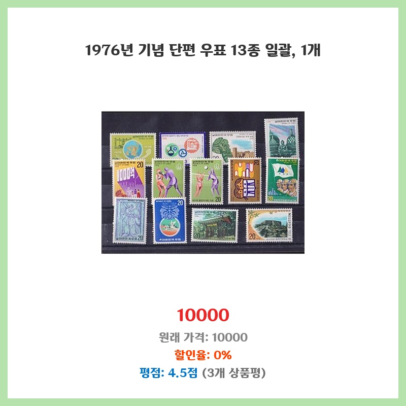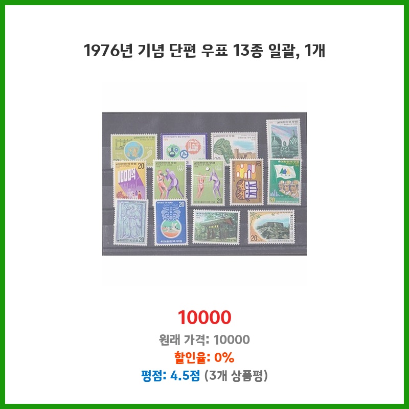 1976년 기념 우표 13종 세트는 당시 역사적 사건을 기념하는 희귀한 아이템입니다. 소장가치가 높고, 우표 수집에 관심 있는 저에게는 매력적인 상품입니다. 상태가 양호하다면 더욱 좋을 것 같습니다.