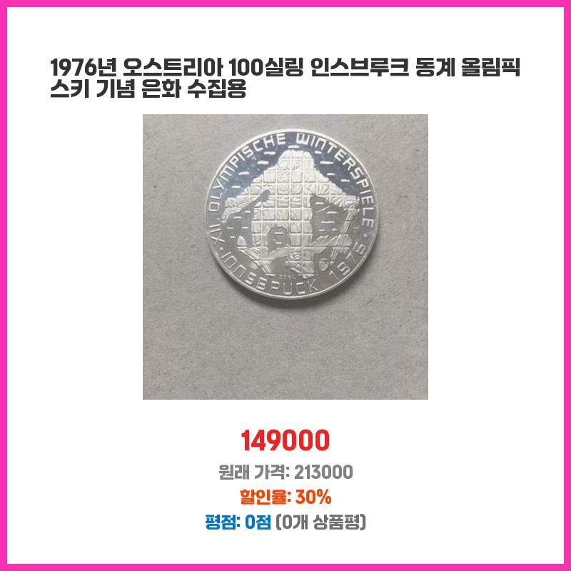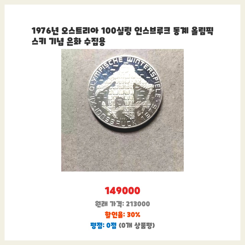 1976년 인스브루크 동계올림픽 기념 은화라 역사적 가치가 높고, 희소성 있는 수집품이라 매력적입니다. 은화의 상태가 좋아 보존 가치도 높다고 판단했습니다.