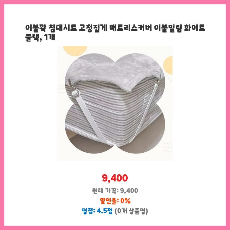 밤마다 밀리는 침대 시트 때문에 잠 설치는 일이 잦았습니다. 이 제품은 간편하게 시트를 고정해줘서 숙면에 도움이 될 것 같아 구매했습니다. 깔끔한 디자인도 마음에 들었습니다.