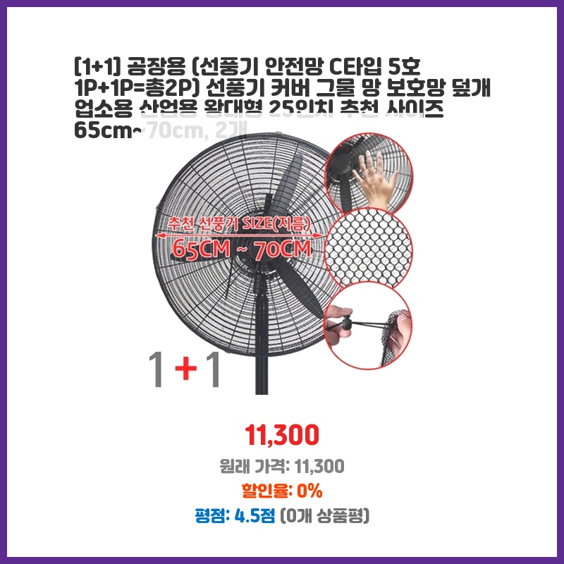 [1+1] 공장용 (선풍기 안전망 C타입 5호 1P+1P=총2P) 선풍기 커버 그물 망 보호망 덮개 업소용 산업용 왕대형 25인치 추천 사이즈 65cm~70cm, 2개