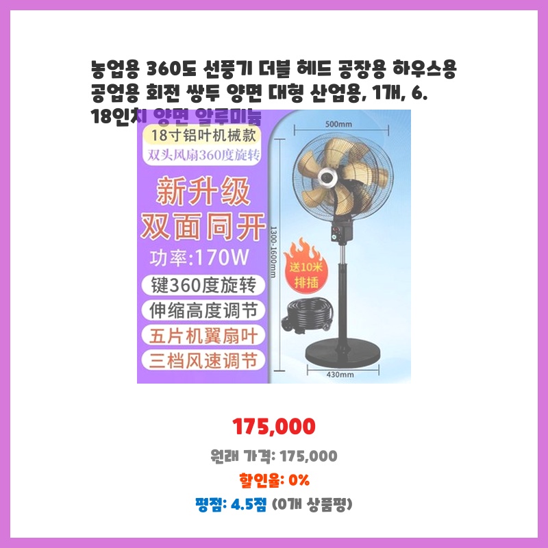 재구매율 1위 농업용 360도 선풍기 더블 헤드 공장용 하우스용 공업용 회전 쌍두 양면 대형 산업용 1개 6. 18인치 양면 알루미늄 믿고 보는 셀러 상품