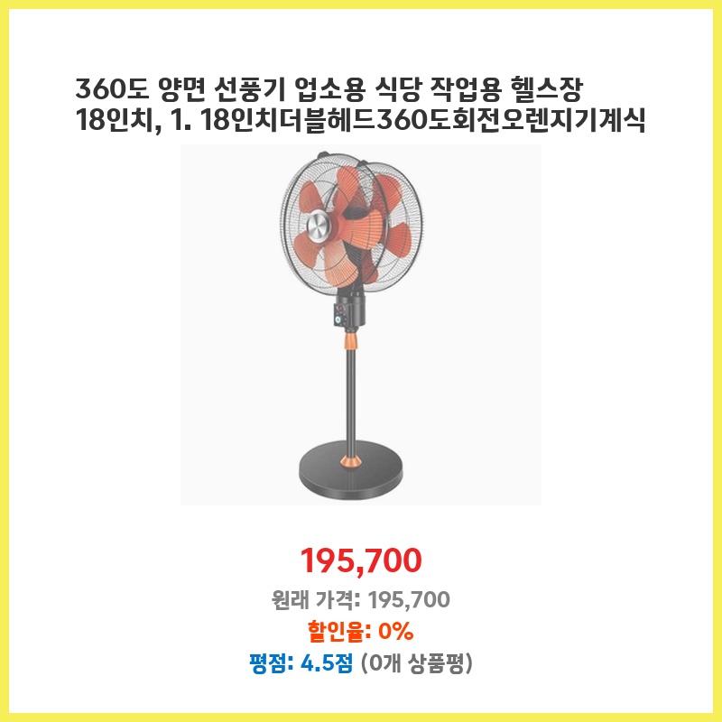 360도 양면 선풍기 업소용 식당 작업용 헬스장 18인치, 1. 18인치더블헤드360도회전오렌지기계식