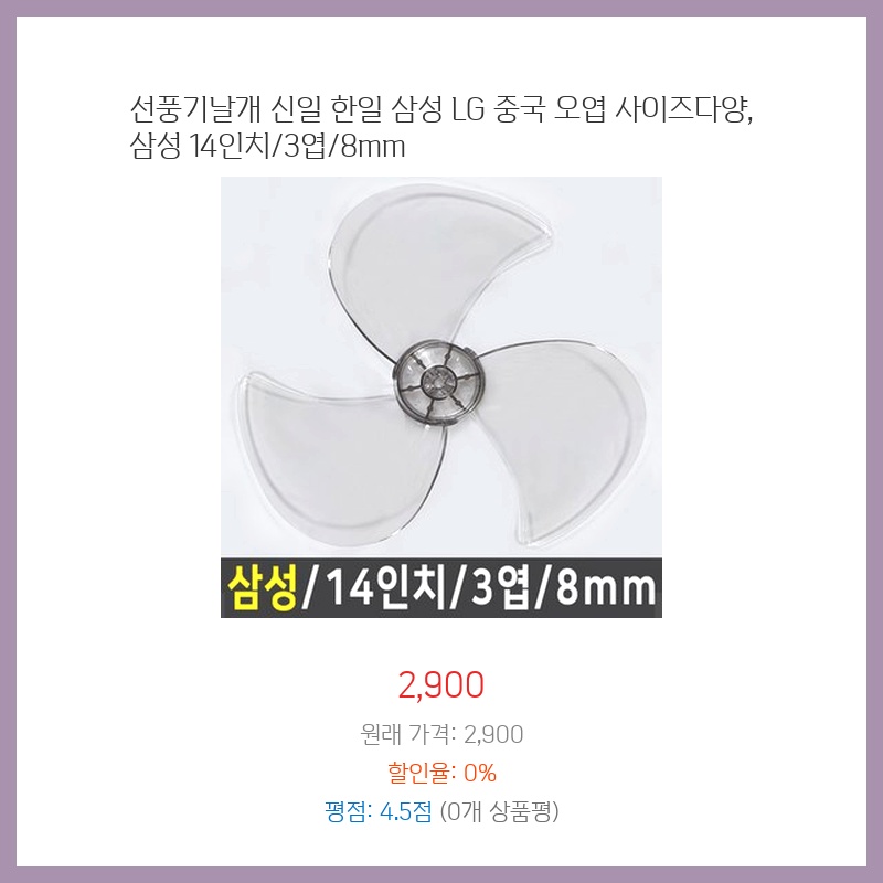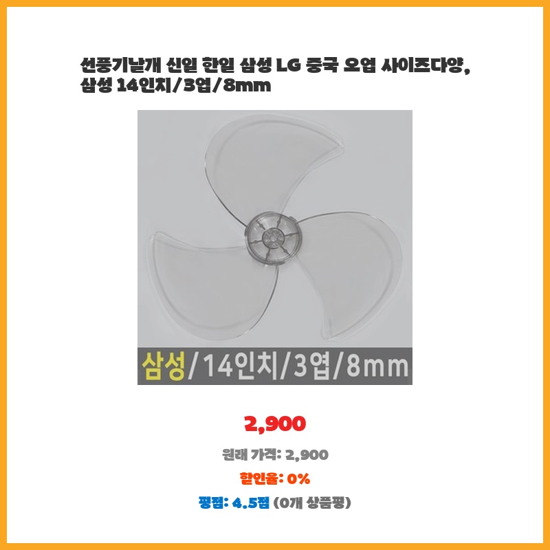 기존 선풍기 날개가 손상되어 저렴하게 교체할 날개를 찾던 중, 다양한 브랜드와 사이즈가 있어 선택의 폭이 넓어 구매했습니다. 특히 삼성 14인치 날개는 가격 대비 품질이 좋아 보였습니다.
