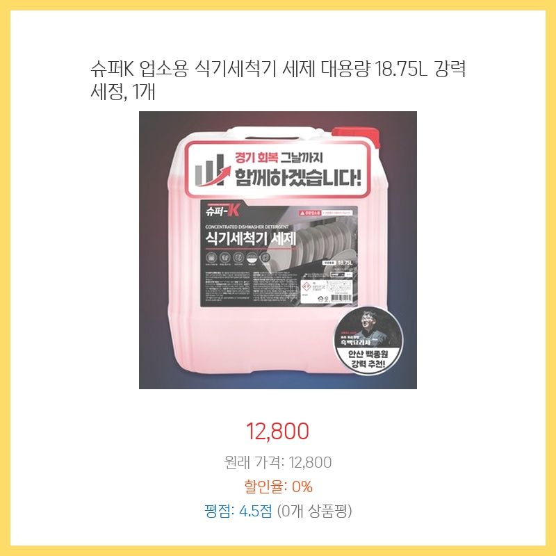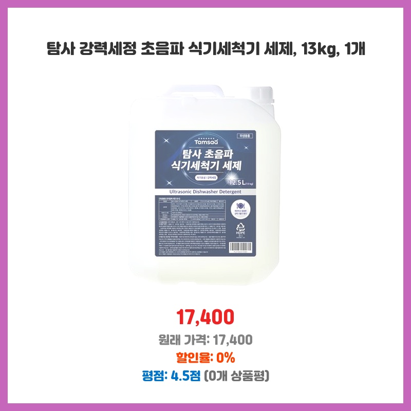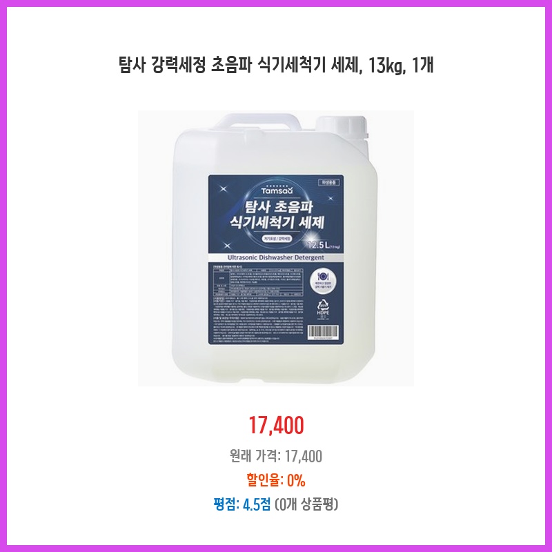 [제품 설명에 업소용이라고 명시되어 있으므로 가정용 식기세척기의 경우 제조사 권장 세제를 사용하는 것이 좋습니다.]