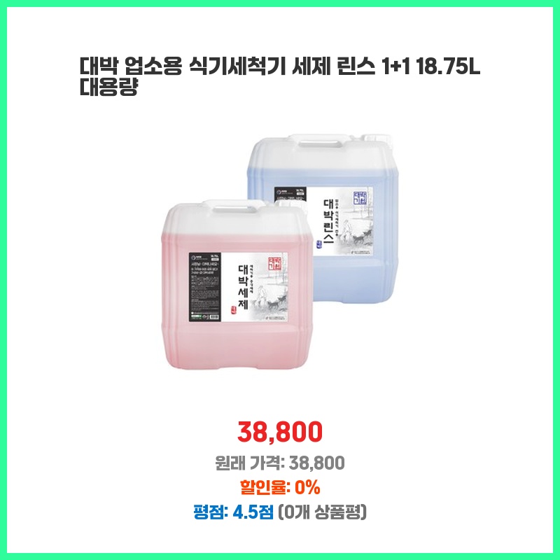 대박 업소용 식기세척기 세제 린스 1+1 18.75L 대용량