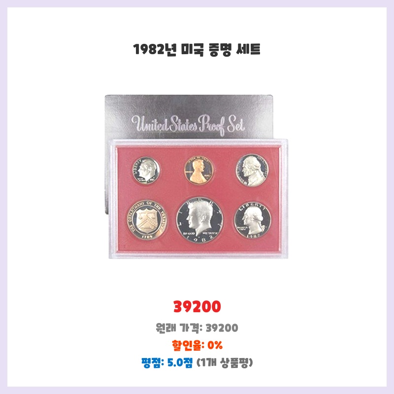 1982년 미국 증명 세트는 미국 화폐의 역사를 간직한 소장 가치 높은 아이템입니다. 완벽한 상태의 동전을 소유하고 싶었고, 희소성 있는 컬렉션을 시작하기에 적합하다고 판단했습니다.