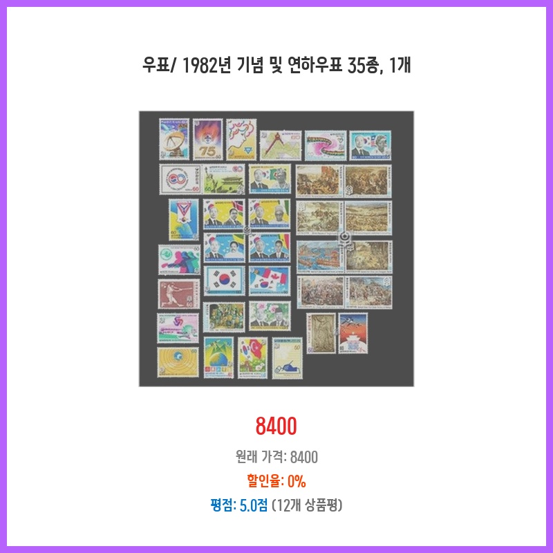 1982년 기념 및 연하우표 35종이라는 희소성과 깔끔한 상태에 매력을 느껴 구매했습니다. 추억을 소환하고 수집 취미를 즐기기에 좋은 상품이라고 생각합니다. 다양한 디자인의 우표를 한 번에 소장할 수 있다는 점이 좋았습니다.