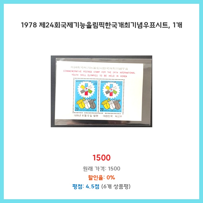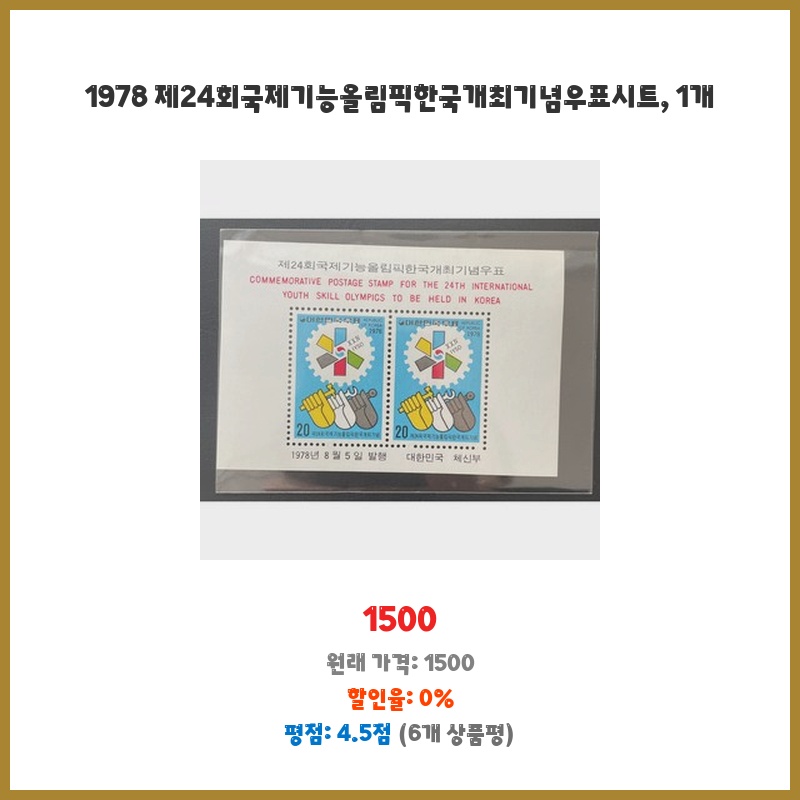 [1978년 기능올림픽을 기념하는 디자인이며, 자세한 디자인은 상품 사진을 참고하거나 판매자에게 문의하세요.]