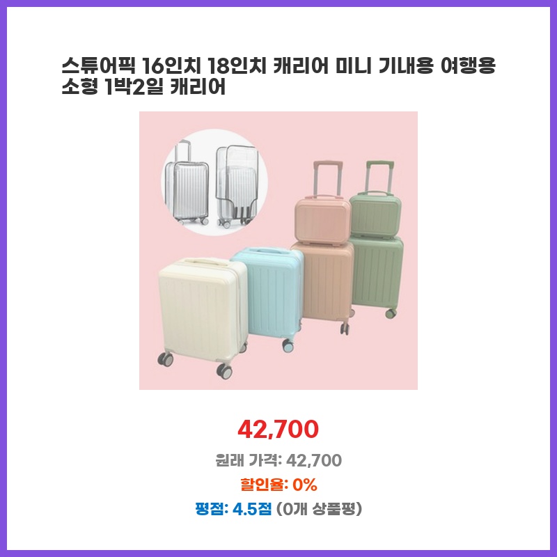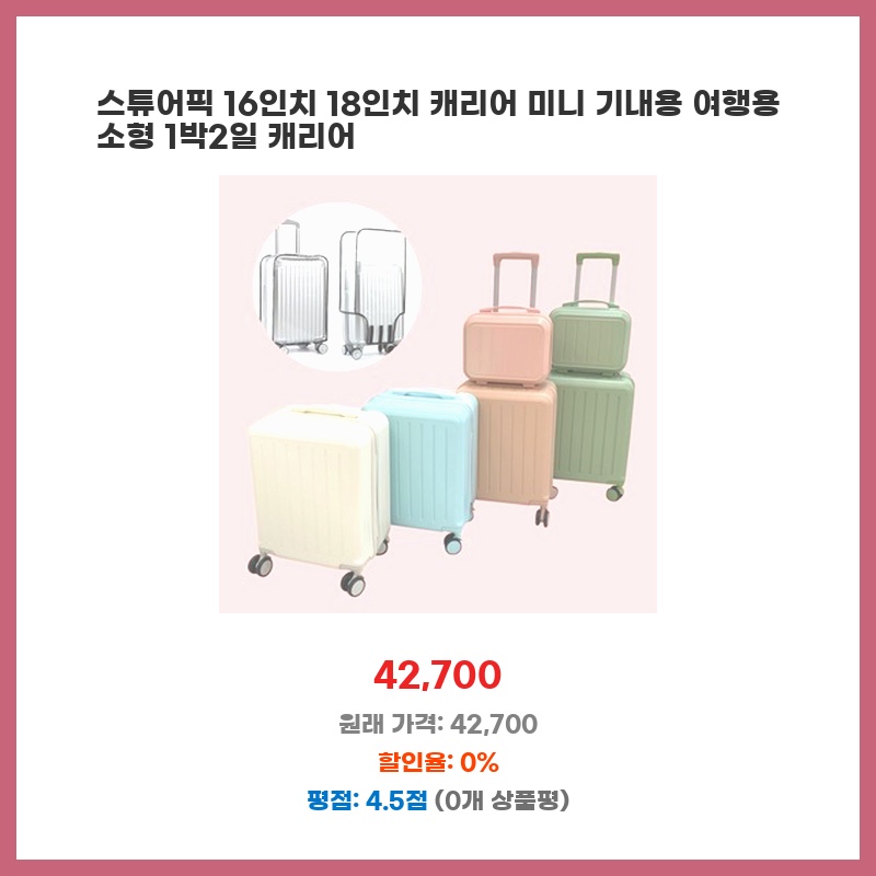스튜어픽 16인치 18인치 캐리어 미니 기내용 여행용 소형 1박2일 캐리어