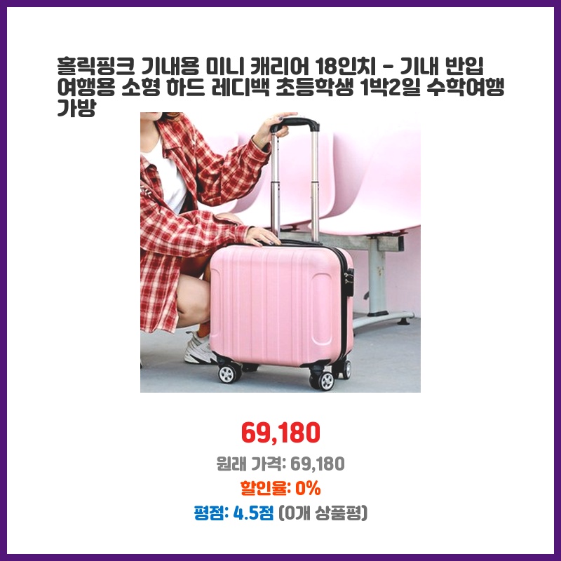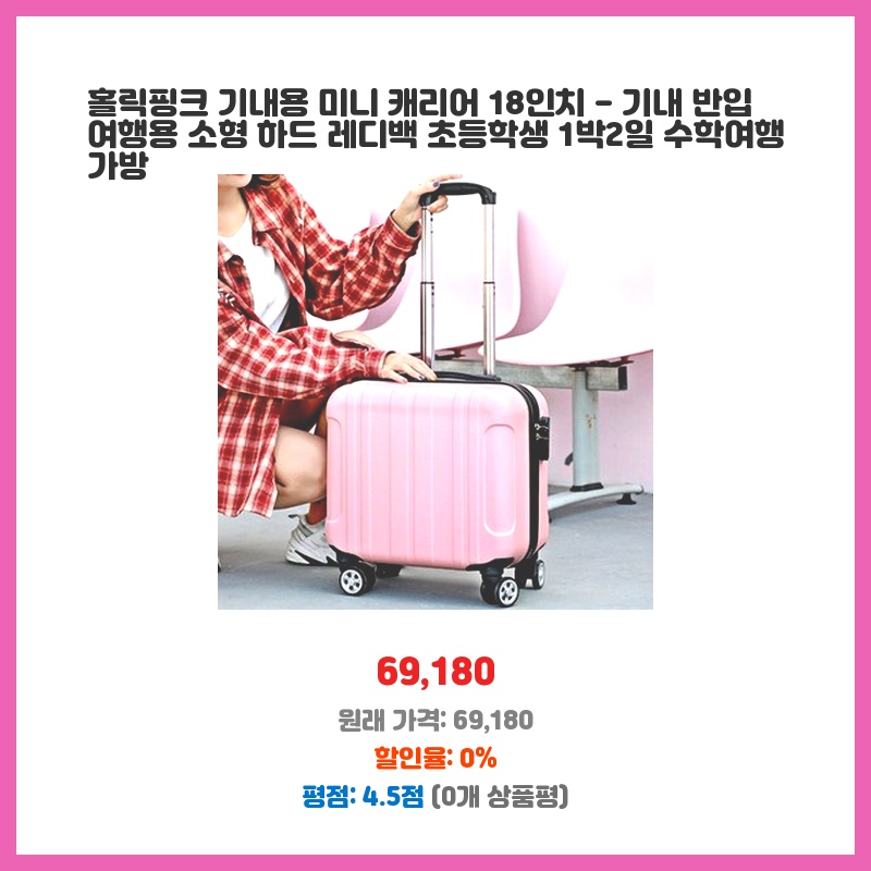 홀릭핑크 기내용 미니 캐리어 18인치 - 기내 반입 여행용 소형 하드 레디백 초등학생 1박2일 수학여행 가방