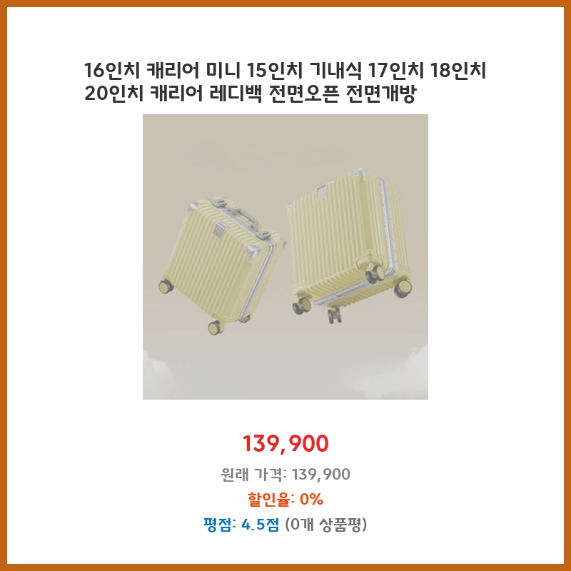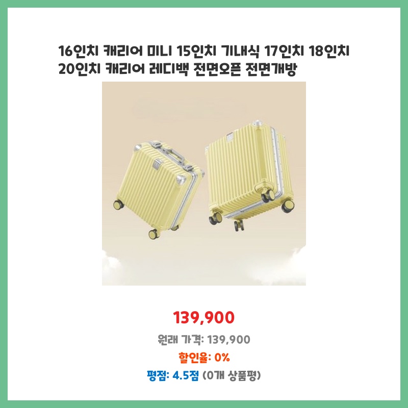 적립 혜택 16인치 캐리어 미니 15인치 기내식 17인치 18인치 20인치 캐리어 레디백 전면오픈 전면개방 지갑이 가벼워지는 혜택
