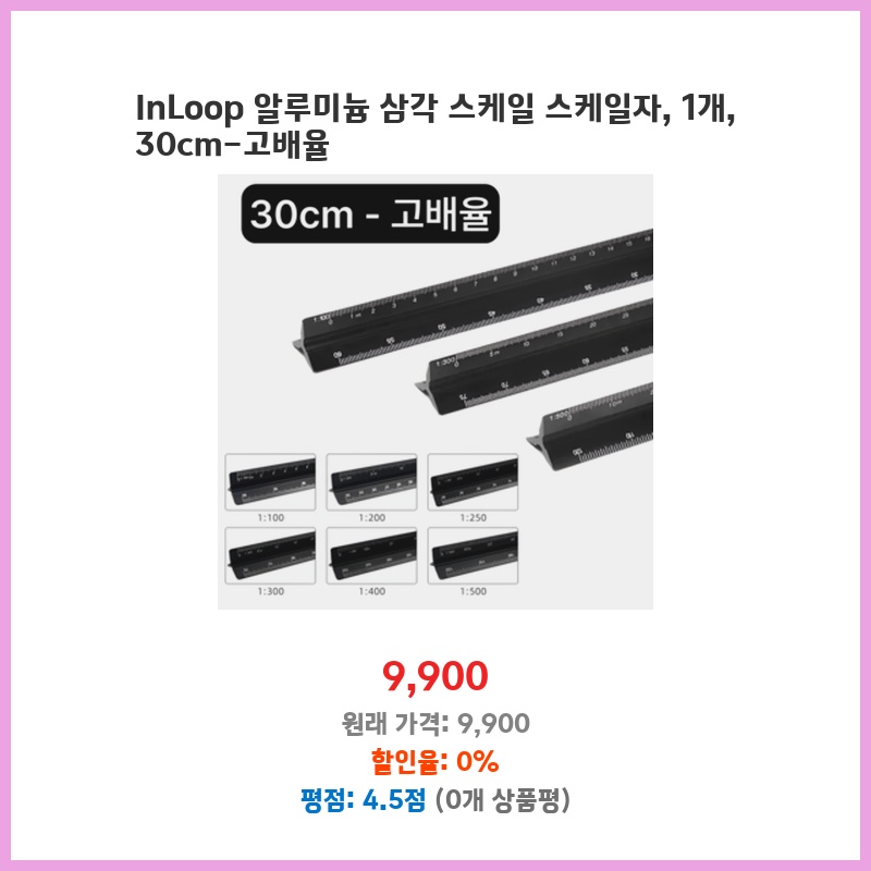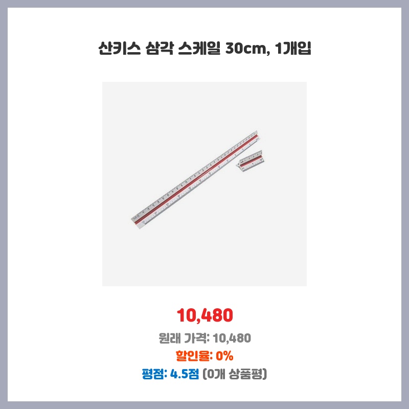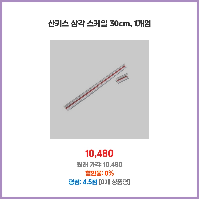 정확한 측정이 필요한 작업을 위해 삼각 스케일을 찾던 중, 30cm의 적절한 크기와 견고해 보이는 산키스 제품을 선택했습니다. 가격 대비 품질이 좋아 보였고, 1개입으로 필요한 만큼만 구매할 수 있어 좋았습니다.