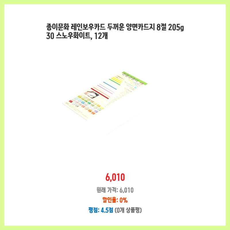 종이문화 레인보우카드 두꺼운 양면카드지 8절 205g 30 스노우화이트, 12개