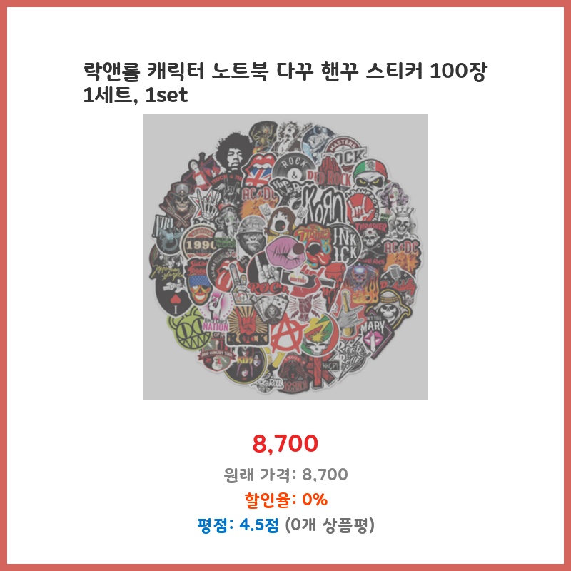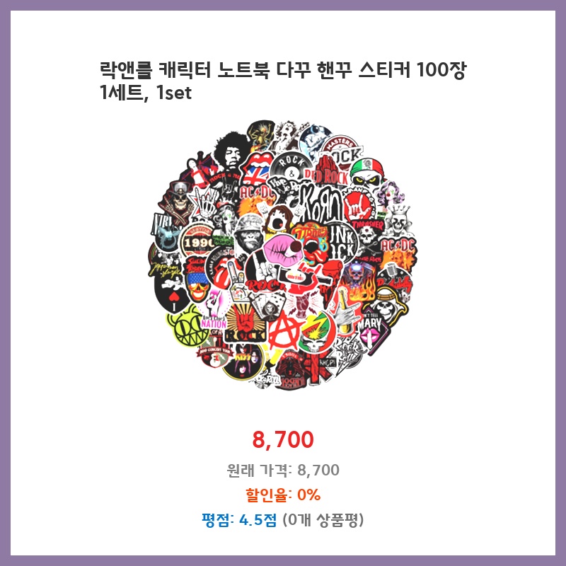 다꾸 덕후인 저에게 100장이나 되는 락앤롤 캐릭터 스티커는 훌륭한 선택이었습니다. 다양한 디자인으로 활용도가 높고, 가격 대비 구성이 만족스러워요. 노트북 꾸미기에 딱 맞는 크기와 종류라 활용도가 높습니다.