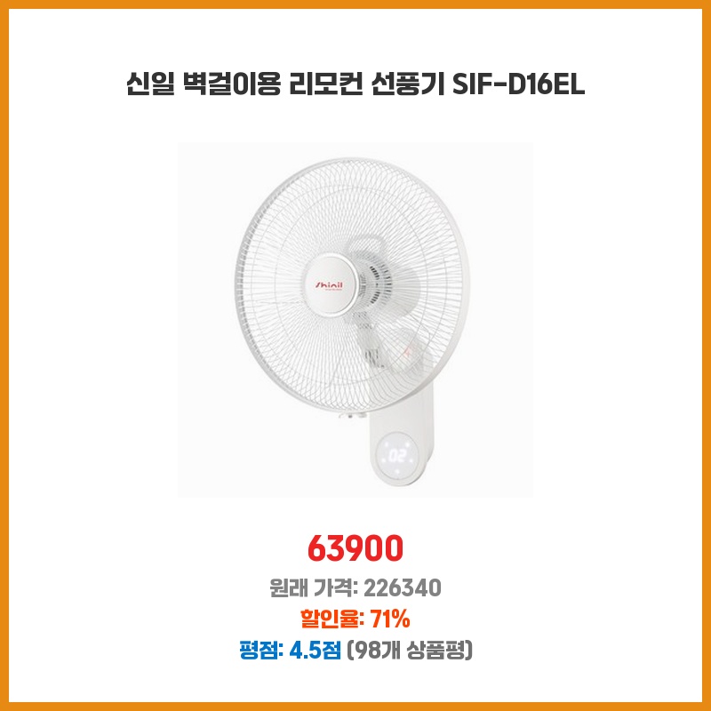 신일 벽걸이용 리모컨 선풍기 SIF-D16EL