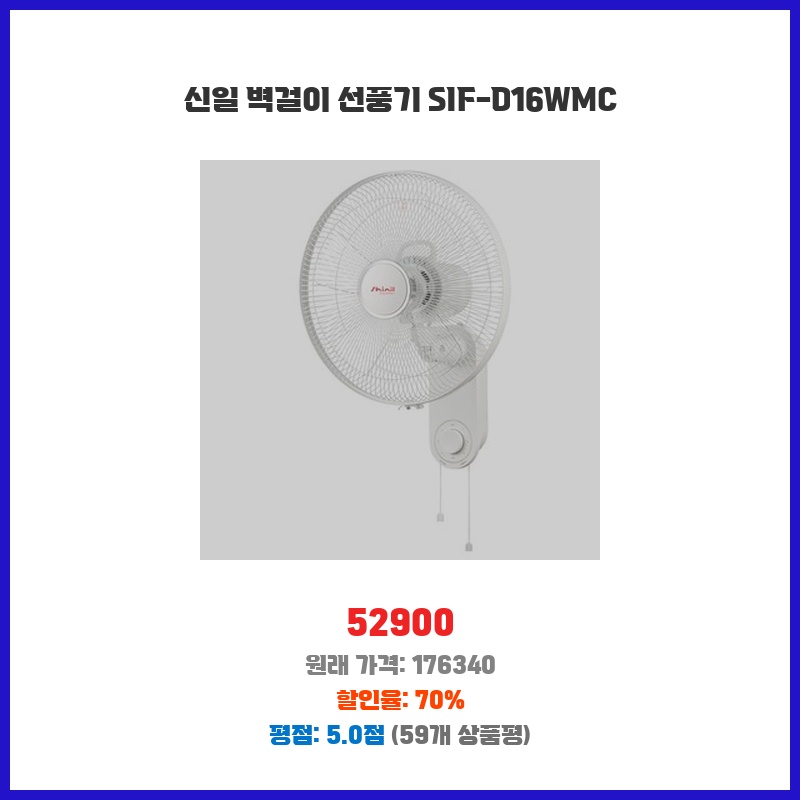신일 벽걸이 선풍기 SIF-D16WMC