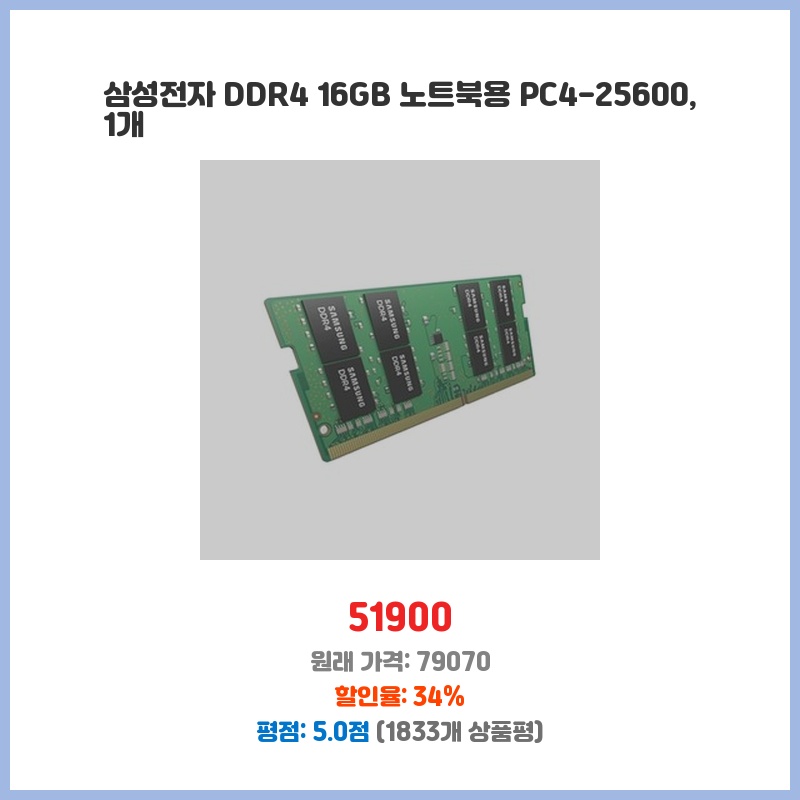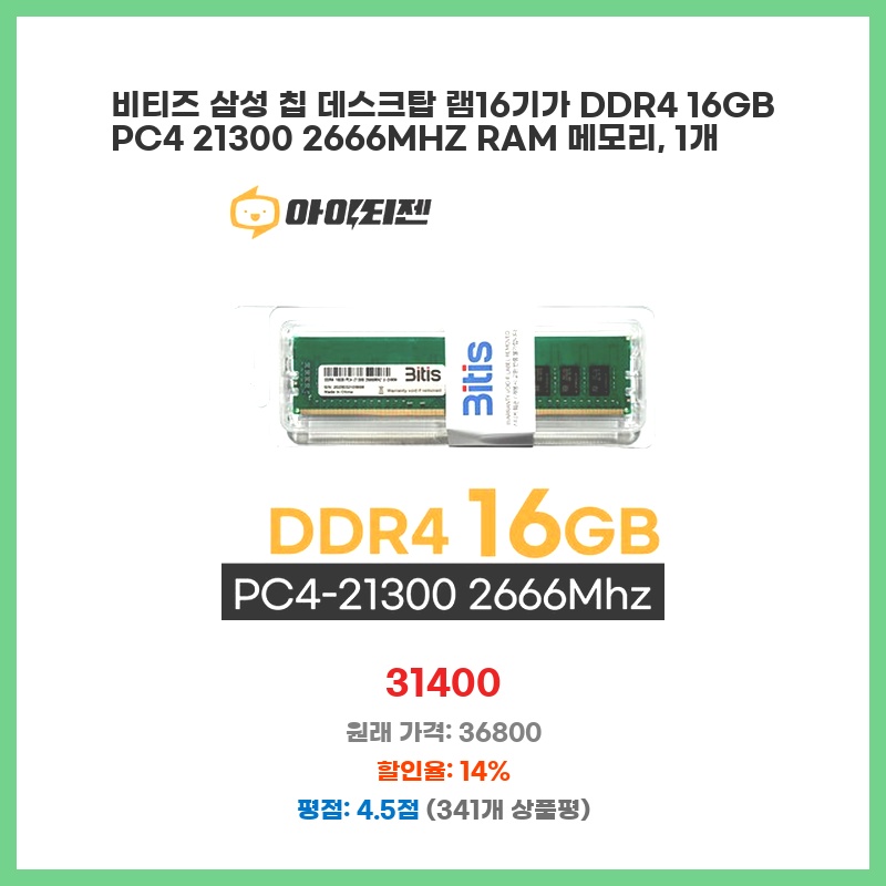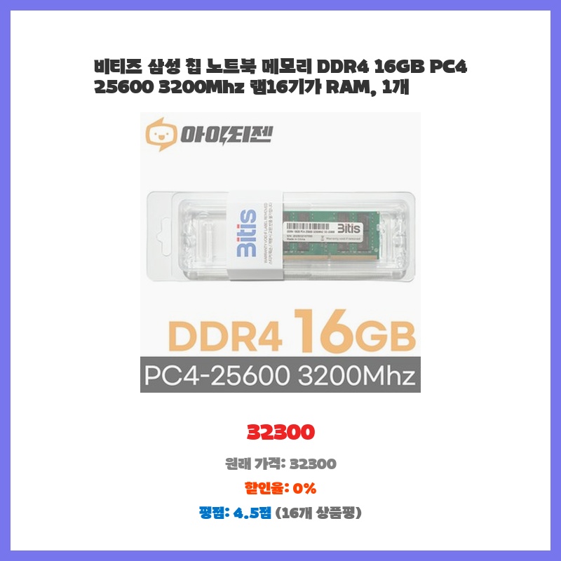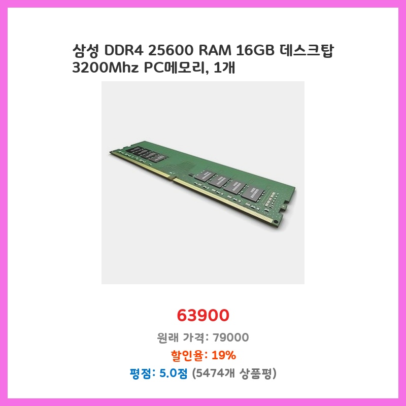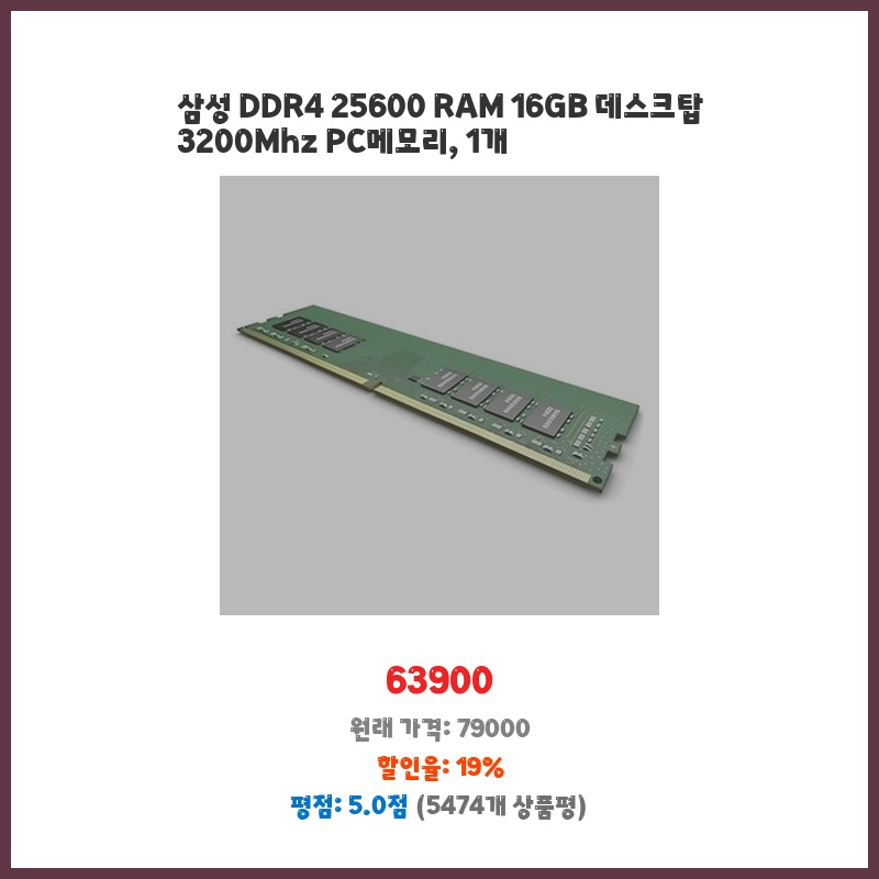 즉시 할인 삼성 DDR4 25600 RAM 16GB 데스크탑 3200Mhz PC메모리 1개 일상에 꼭 필요한 상품