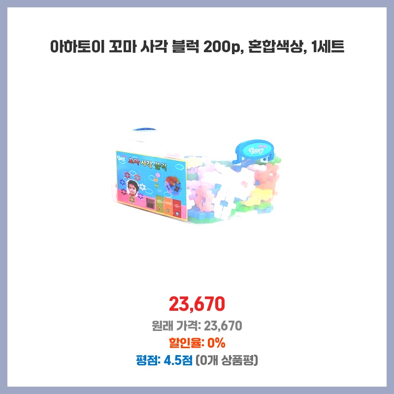 아하토이 꼬마 사각 블럭 200p, 혼합색상, 1세트