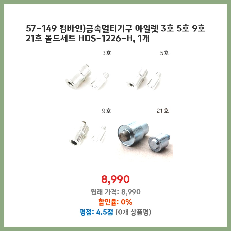 57-149 컴바인)금속멀티기구 아일렛 3호 5호 9호 21호 몰드세트 HDS-1226-H, 1개