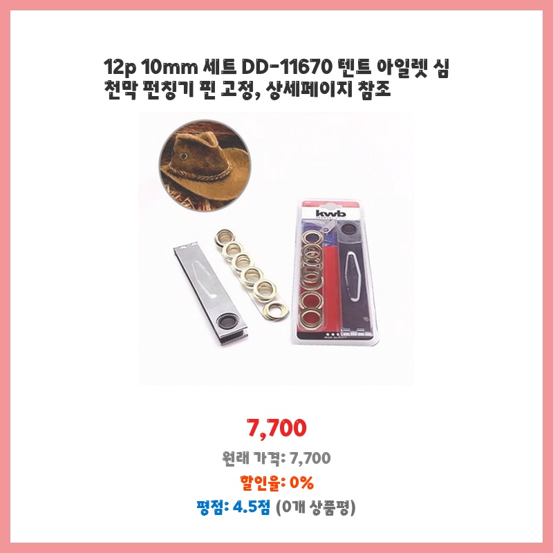 즉시 할인 12p 10mm 세트 DD-11670 텐트 아일렛 심 천막 펀칭기 핀 고정 상세페이지 참조 생생한 리뷰