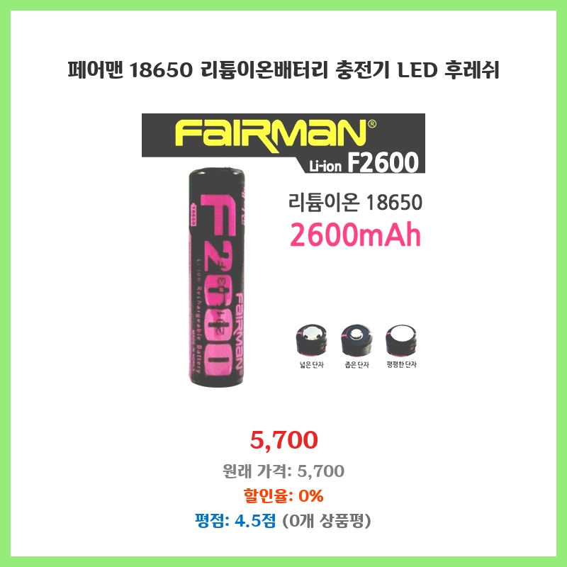 페어맨 18650 리튬이온배터리 충전기 LED 후레쉬