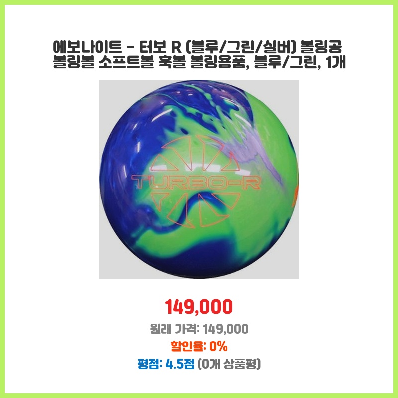 에보나이트 - 터보 R (블루/그린/실버) 볼링공 볼링볼 소프트볼 훅볼 볼링용품, 블루/그린, 1개
