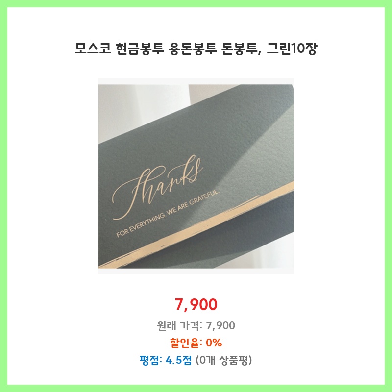 모스코 현금봉투 용돈봉투 돈봉투, 그린10장