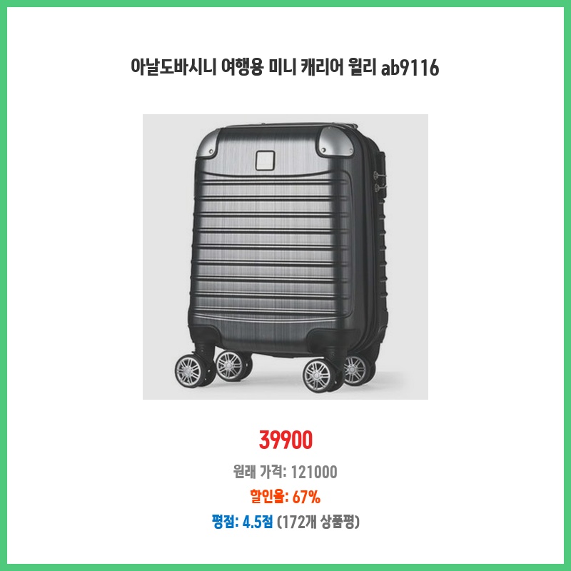16인치라 기내 반입이 가능하고, 가격도 저렴해서 부담없이 구매했습니다. 잠금장치도 있어서 안전하게 짐을 보관할 수 있다는 점이 좋았습니다. 여행용 캐리어로서 기본적인 기능은 충실히 갖춘 제품입니다.