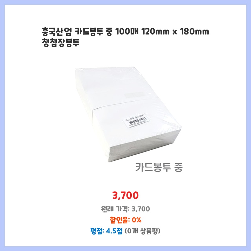 흥국산업 카드봉투 중 100매 120mm x 180mm 청첩장봉투